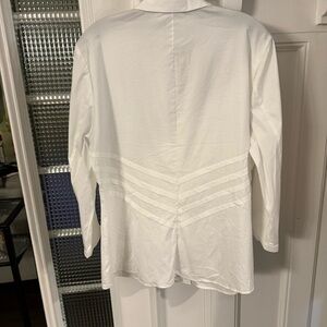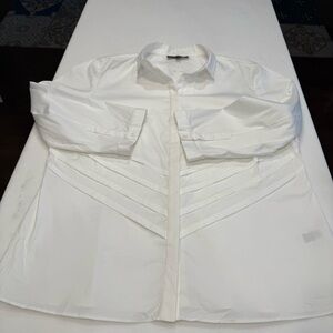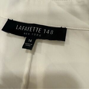 Excellent like new condition. Women’s Lafayette 148 “Charmaine” blouse / shirt. White, pintucked pleats on the front and back, Classic collar, 3/4 sleeves. Stretch, cotton & spandex blend. Size 14 see photos for measurements. MSRP $380