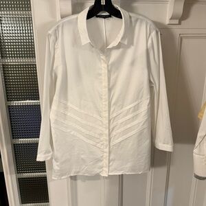 LAFAYETTE 148 Women’s White Button Down Shirt pintucked Panels Stretch Sz 14