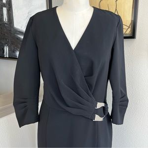 LAFAYETTE 148 black faux wrap dress with silver hardware