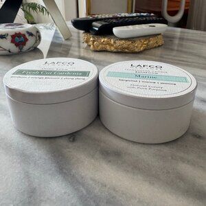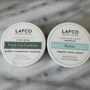 Two 4oz LAFCO New York Candles in the scents Fresh Cut Gardenia & Marine.