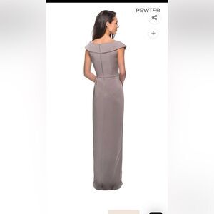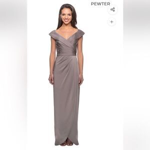LA FEMME NWT Size 12Elegant Gray Off-Shoulder Evening Dress