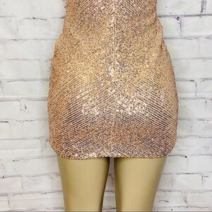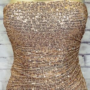 LA FEMME Strapless Rose Gold Sequin Sheath Dress