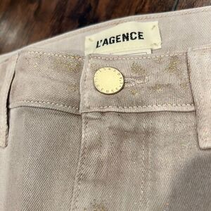 L’AGANCE | Margot Skinny Jeans tan color with glitter high rise size 26 with glitter all over stand out with this one cool high end pants stretchy