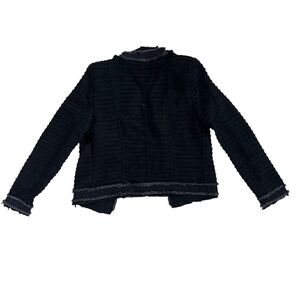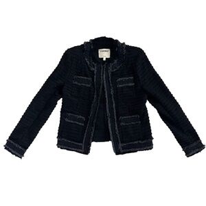 L'AGENCE Agnes Tweed Jacket in Black Wash, Size Small, Made in USA, Denim Fringe