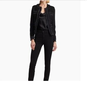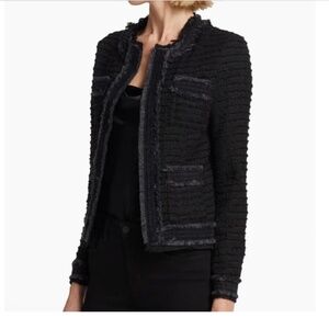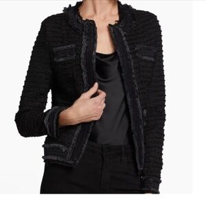 L'AGENCE Agnes Tweed Jacket in Black Wash, Size Small, Made in USA, Denim Fringe