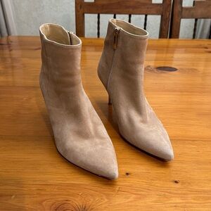 These beautiful shoes are Crafted in a plush suede, L'Agence's Aimee booties check all the wardrobe hero boxes with classic pointed toes and kitten heels. Side zip closures.