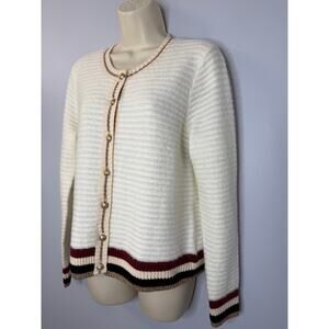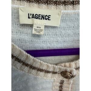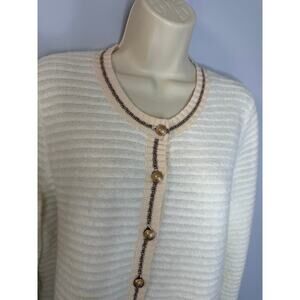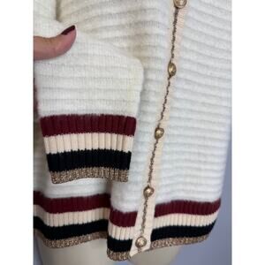 L’AGENCE Archer Cardigan Sweater Ivory Striped Gold Button Women's M