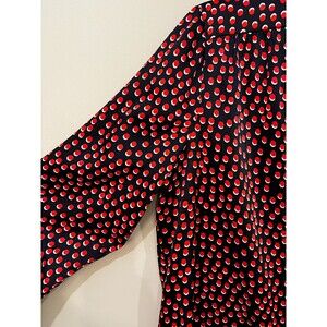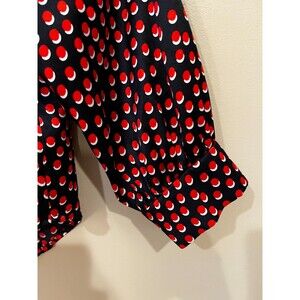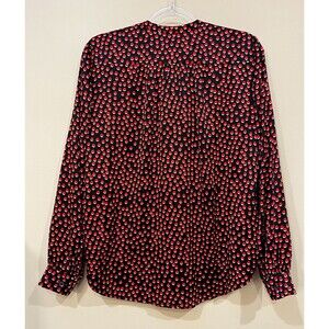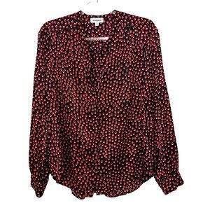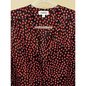 L'AGENCE Bardot Collar Blouse Size M Charmeuse Red Black Top 100% Silk Long Sleeve Button Up