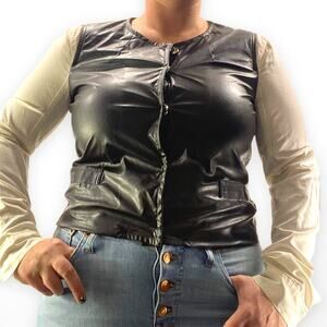 L’AGENCE Black and White Colorblock Lightweight Button Up Jacket