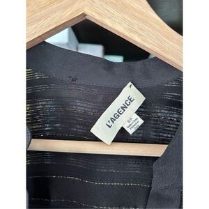 L’AGENCE Black Gold Silk Sheer Tassel Blouse Size Small