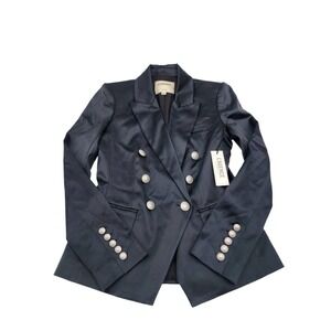 L'AGENCE Kenzie Double Breasted Black Satin Blazer Sport Coat Jacket Size 2 NWT.