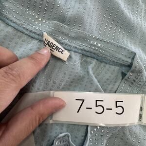 Tags/Markings: L'AGENCE brand label; size tag "0"; fabric tag "100% silk"