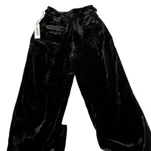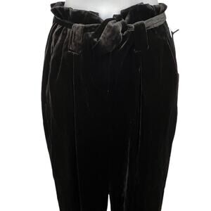 L'AGENCE Bobby Size 2 Velvet Wide Leg Paperbag Pants Black Belted Tie Waist NWT