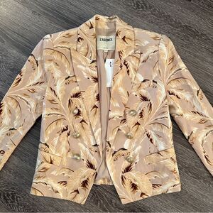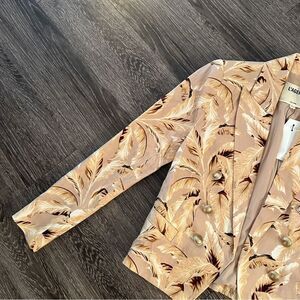 L'AGENCE Brooke Leaf Print Cropped Blazer Honey Multi Tonal Palm Feather…
