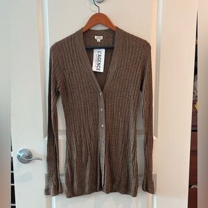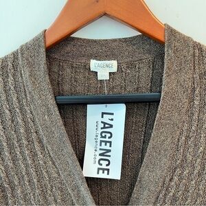 Features an exquisite allover cabled rib and a long sleeve that ends in a fluted cuff that falls mid-hand.
