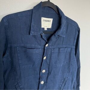 L’AGENCE Celine Slim Femme Jacket Marine Navy Blue Linen Casual Women’s Small