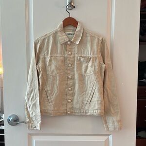 Spread collar; button front. Long sleeves; button cuffs. Chest patch pockets. Side slip pockets.
