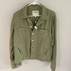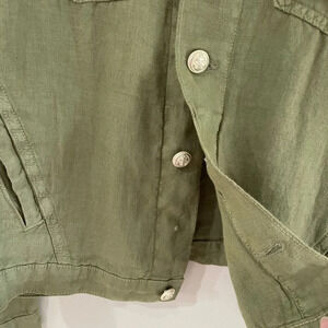 This utility-inspired jacket is made from linen and includes pretty nautical button detail and a flattering a slightly shrunken fit. Perfect fall or spring jacket