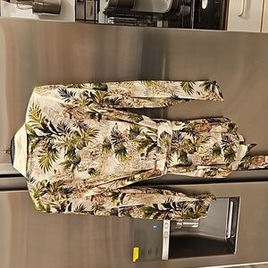 💕L'AGENCE💕 Ciara Robe Blouse ~ Antique White Safari Print Medium M NWT