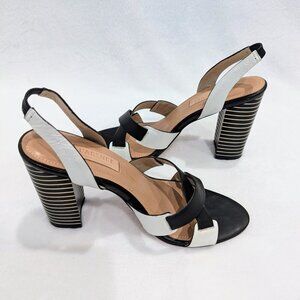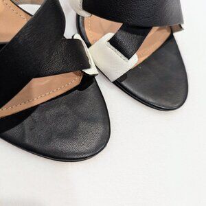 L'AGENCE Contrast Striped Heel Sandals 7.5 Black White Criss Cross Straps