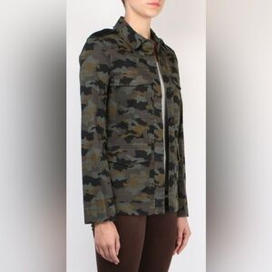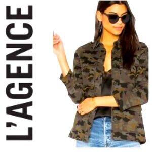 Stylish L'AGENCE jacket with olive and black camouflage. Perfect for a chic, urban style