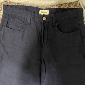 Chic deep navy linen fabric with a stylish button detail. Perfect for modern fashion.