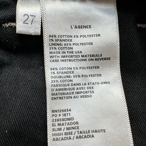 L’AGENCE El Matador High Rise Raw Hem Jeans in Arcadia size 27