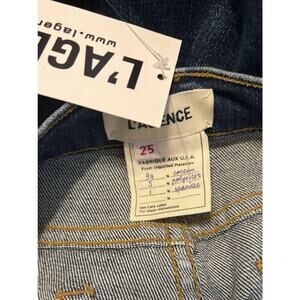 Size 25. Fabric content 94% cotton, 5% polyester, 1% spandex. Made in the USA.