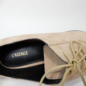 L'AGENCE Elise III Pointed Toe Oxford Flat Shoes Size 6.5 Cappuccino Suede NEW