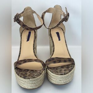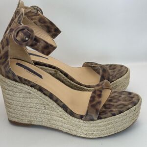 L'AGENCE Elysee Suede Espadrille Wedge Sandals Cheetah Sz 37 US 7