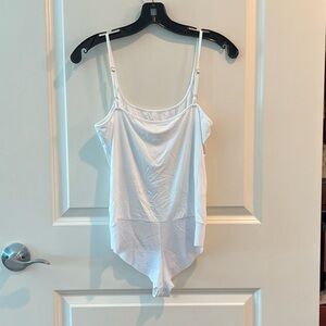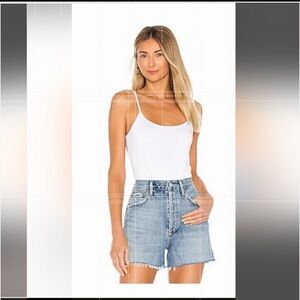 L'AGENCE White Stretch Rayon Spaghetti Strap Ford Cami Bodysuit