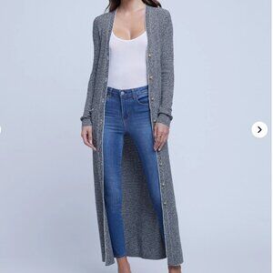 L’AGENCE Galena Boucle Knit Black/White Duster Cardigan Sweater | Size Small