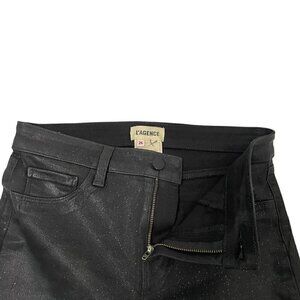 L'AGENCE Glitter Metallic Fleck Coated Skinny Jeans Designer Black size 26