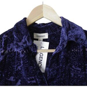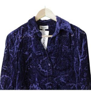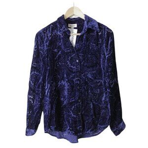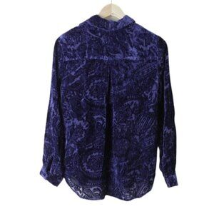A sophisticated take on your classic button-down, L'Agence's blouse is exquisitely tailored from blue devoré velvet with an intricate paisley finish. Button front closures and cuffs.