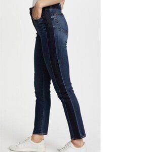 Dark-wash side seams create a tuxedo-striped effect on these slim L'AGENCE jeans.