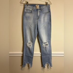 These L’AGENCE jeans are distressed to perfection with a frayed hem and faded wash that enhances the worn-in look. With a little stretch, these jeans will sit right above your waist, contouring to fit you perfectly.