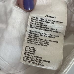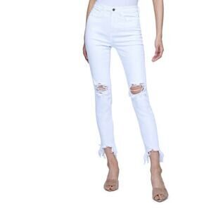 L’AGENCE High Line Skinny Jeans 25 White Ripped Raw Hem Sexy Designer Distressed