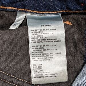 L'AGENCE High Line Women's Distressed Raw Hem Dark Washed Skinny Jeans Size 26