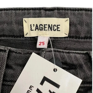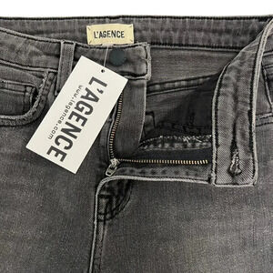 New with Tags L'AGENCE High Rise Straight Leg Distressed Jeans in Grey Wash Denim, Raw Frayed hem Women’s Size 25