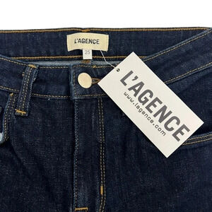 New with Tags L'AGENCE High Rise Straight Leg Jeans in Dark Wash Denim Women's Size 25