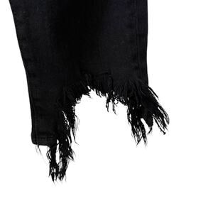Step up your denim game with these edgy L’AGENCE black skinny jeans, designed with statement-making distressing at the knees and dramatic raw-cut fringe hems. Crafted from a comfortable stretch denim blend of 95% cotton, 4% polyester, and 1% spandex, these jeans hug your curves while offering great movement and all-day comfort. A high-rise waist enhances the flattering fit.