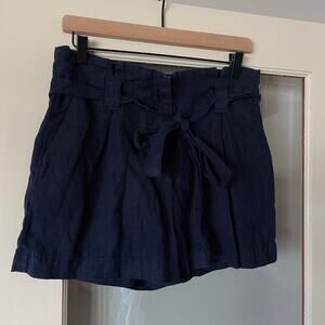 L'AGENCE Hillary Paperbag Shorts in Marine, Navy Blue, Size 26, 100% Linen, High Waisted, High Waist, High Rise, Relaxed Fit, Self Tie at Waist, Excellent Condition with No Flaws.