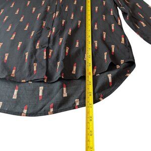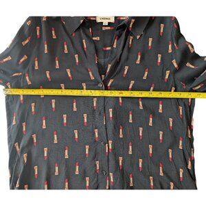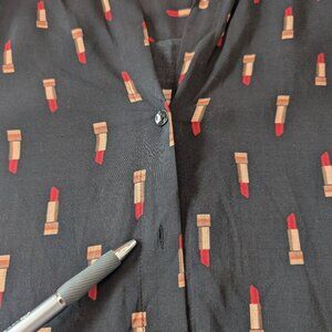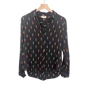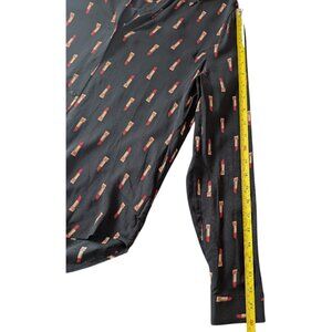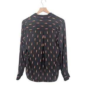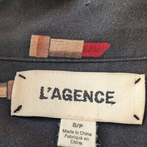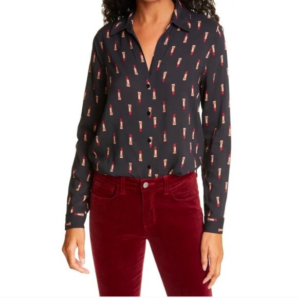 L'AGENCE | Holly Lipstick Print Long Sleeve Button Front Blouse | Small | Black