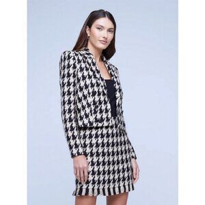 💕L'AGENCE Inez Tweed Blazer + Livia Tweed Skirt Light Camel Black Houndstooth 6