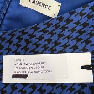 L'AGENCE Jaelyn Size 2 100% Silk Camisole Jumpsuit Blue Black Houndstooth NWT