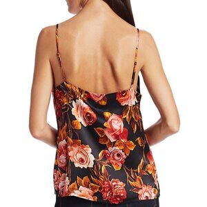 L’AGENCE 'Jane' Rose-Print Silk Camisole Tank Top, Basalt Rosa (Black Multi)