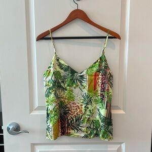 LAGENCE Tropical Palm Multicolor Print Silk Tank Top Reg $230