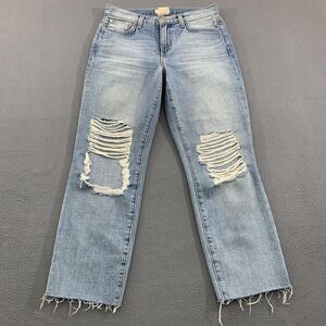 L'AGENCE Jeans Womens 25 Adele High Rise Distressed Raw Hem Ripped Knees USA