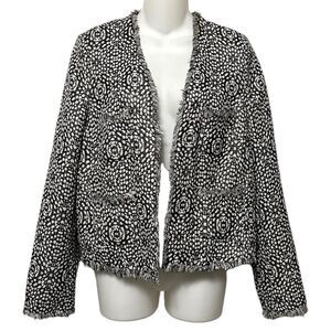 L’AGENCE Jules Tweed Pattern Knit Fringe Trim Open Blazer 8