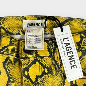 L'AGENCE Jyothi Coated Jean in Yellow/Gold Multi Palma Snake Size 25 NEW